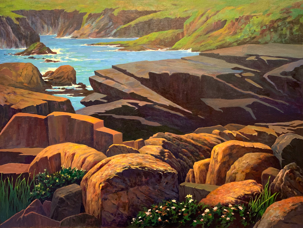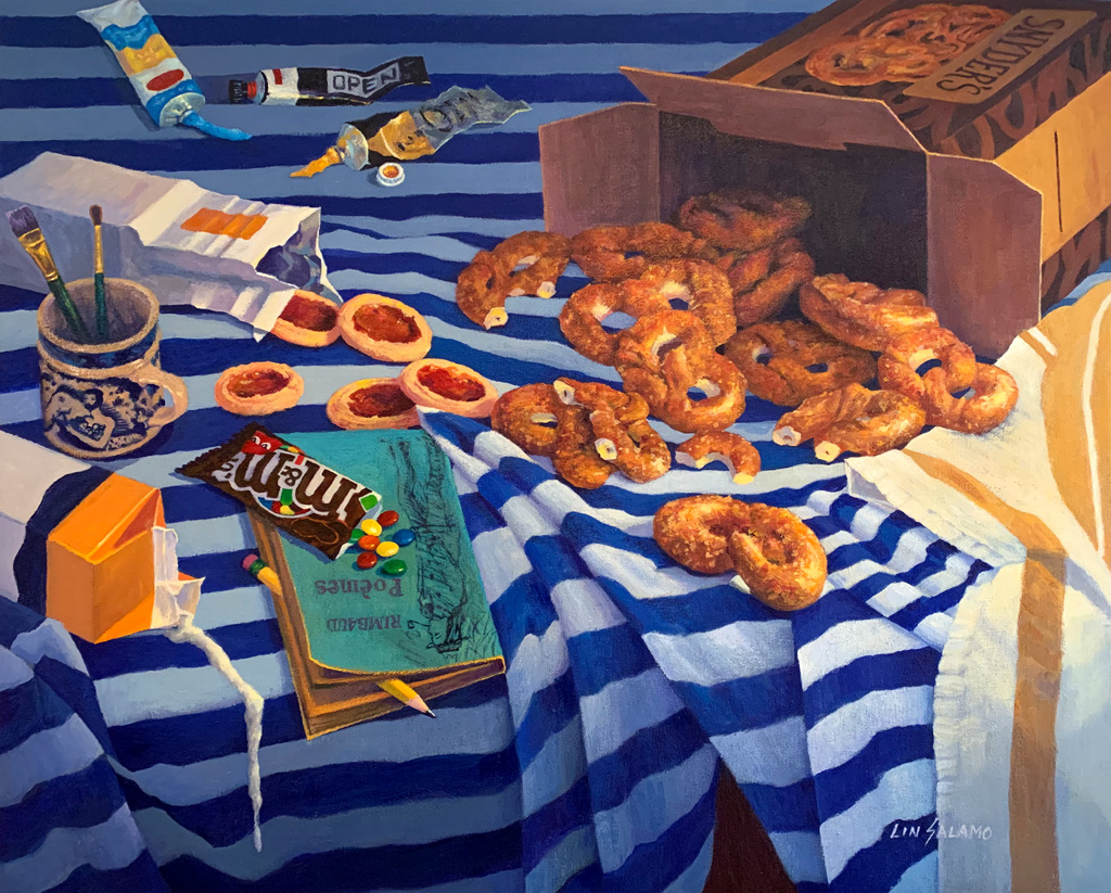 “ My focus is on still life and landscape in the realist tradition. My early works were in acrylic. After a long career at UC Berkeley, I retired to paint full-time. I’ve branched into oils — experimenting with various oil paints, mediums, and surfaces.